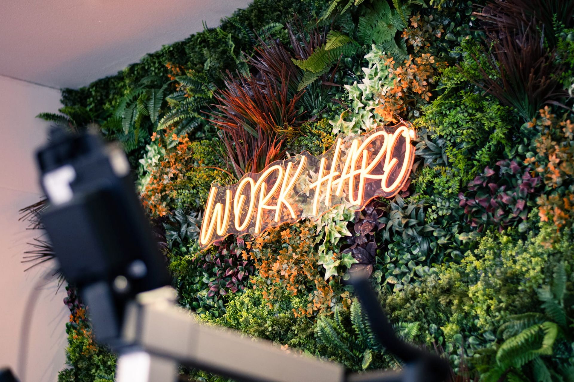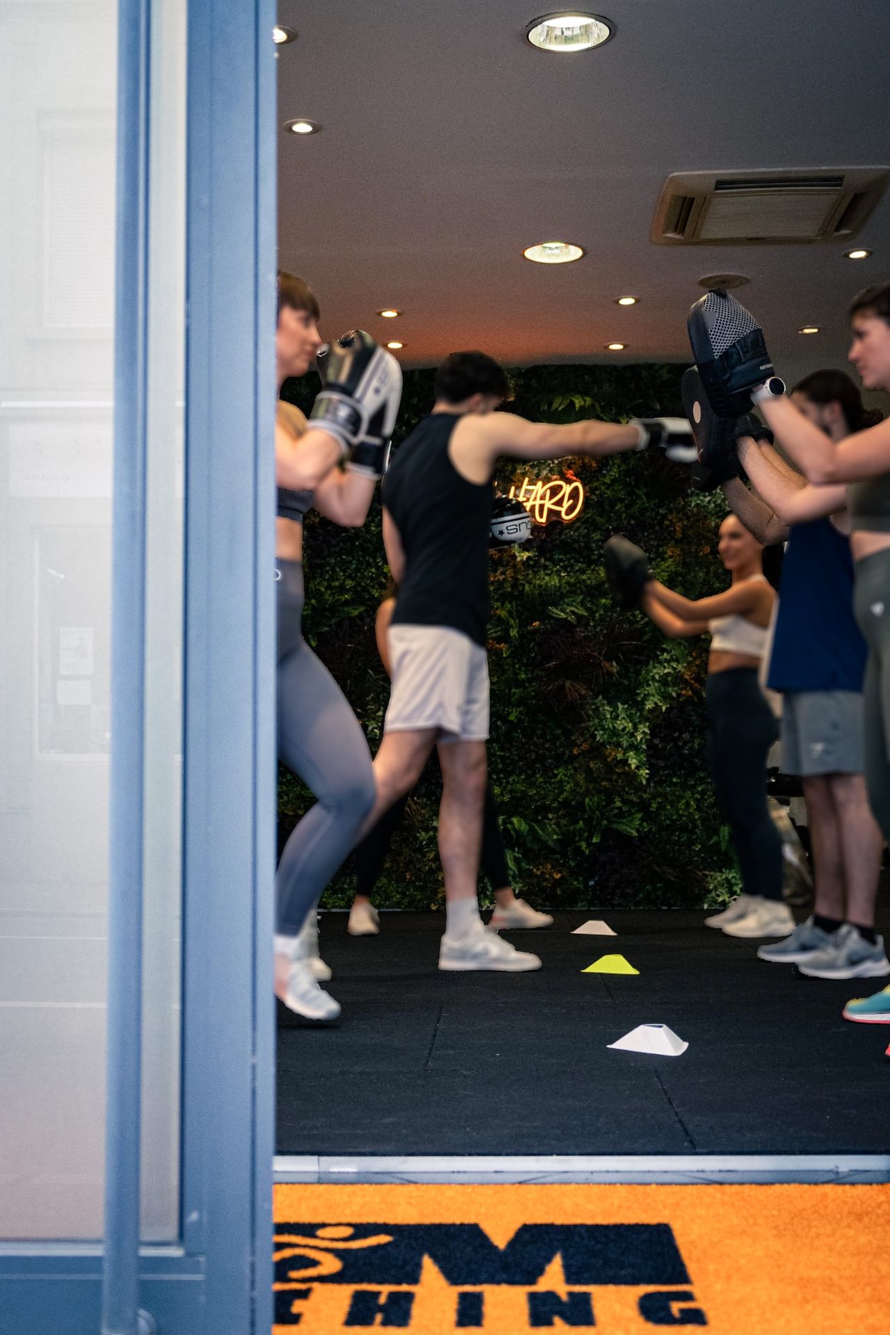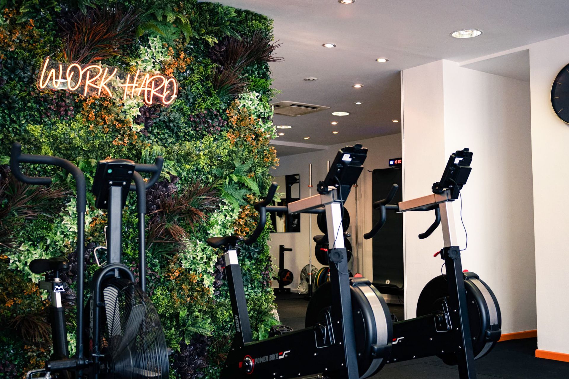 Pourtant, chaque défis ont étés surmontés. L’identité d’AM Coaching s’est affirmée dans une mise en scène énergique et percutante. Les murs végétalisés insufflent de la vitalité, les couleurs du logo rythment l’espace comme un fil conducteur, et un néon lumineux vient signer l’esprit du lieu d’un éclat puissant. Le sol et les machines, d’un noir intense, ancrent l’ensemble dans une ambiance résolument sportive et déterminée.